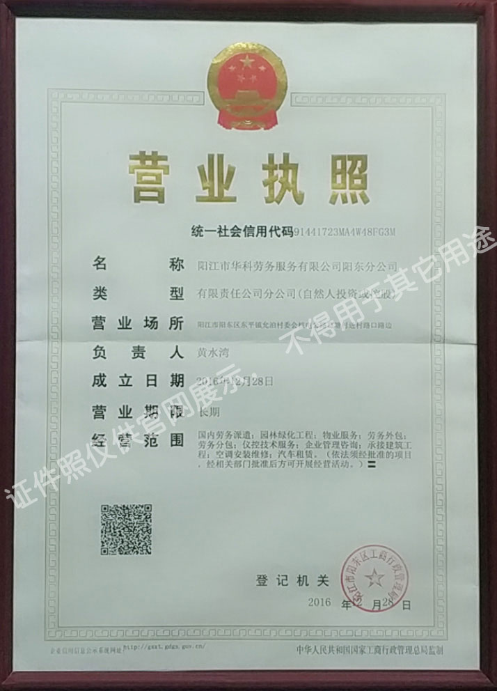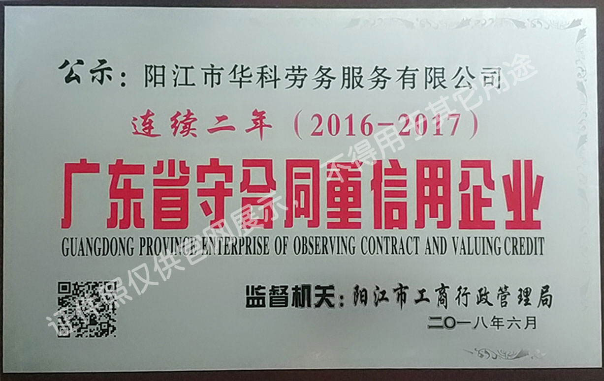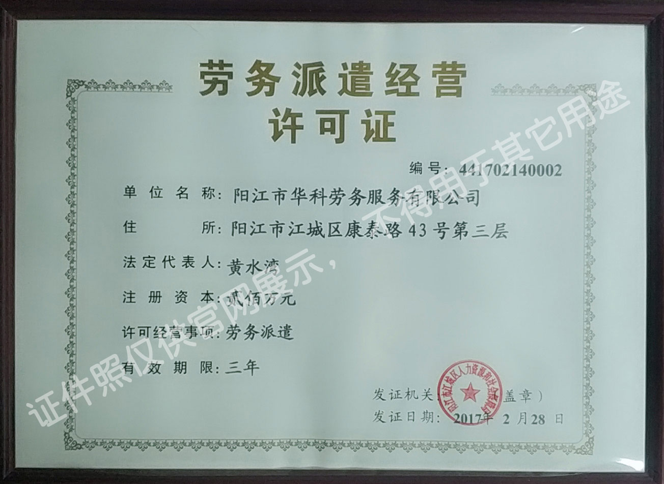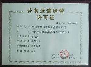 華科勞務服務有限公司是專業從事人事代理、勞務租賃、人力派遣及管理的綜合性服務機構,是首批獲得廣東省人力資源廳、陽江市勞動和社會保障局頒發(fā)人力資源許可證的合法單位。公司秉承“誠信務實、專業熱情、滿意第一、服務社群”的經營理念,在勞務派遣業務的基礎上,更致力于合同制工人(臨時工、實習生、假期工)方向發(fā)展,為用工企業及時輸送合格的各類人才,合理調配人力資源的有序流動,幫助求職者尋求更加滿意的就業渠道和崗位,切實維護求職者的合法權益。